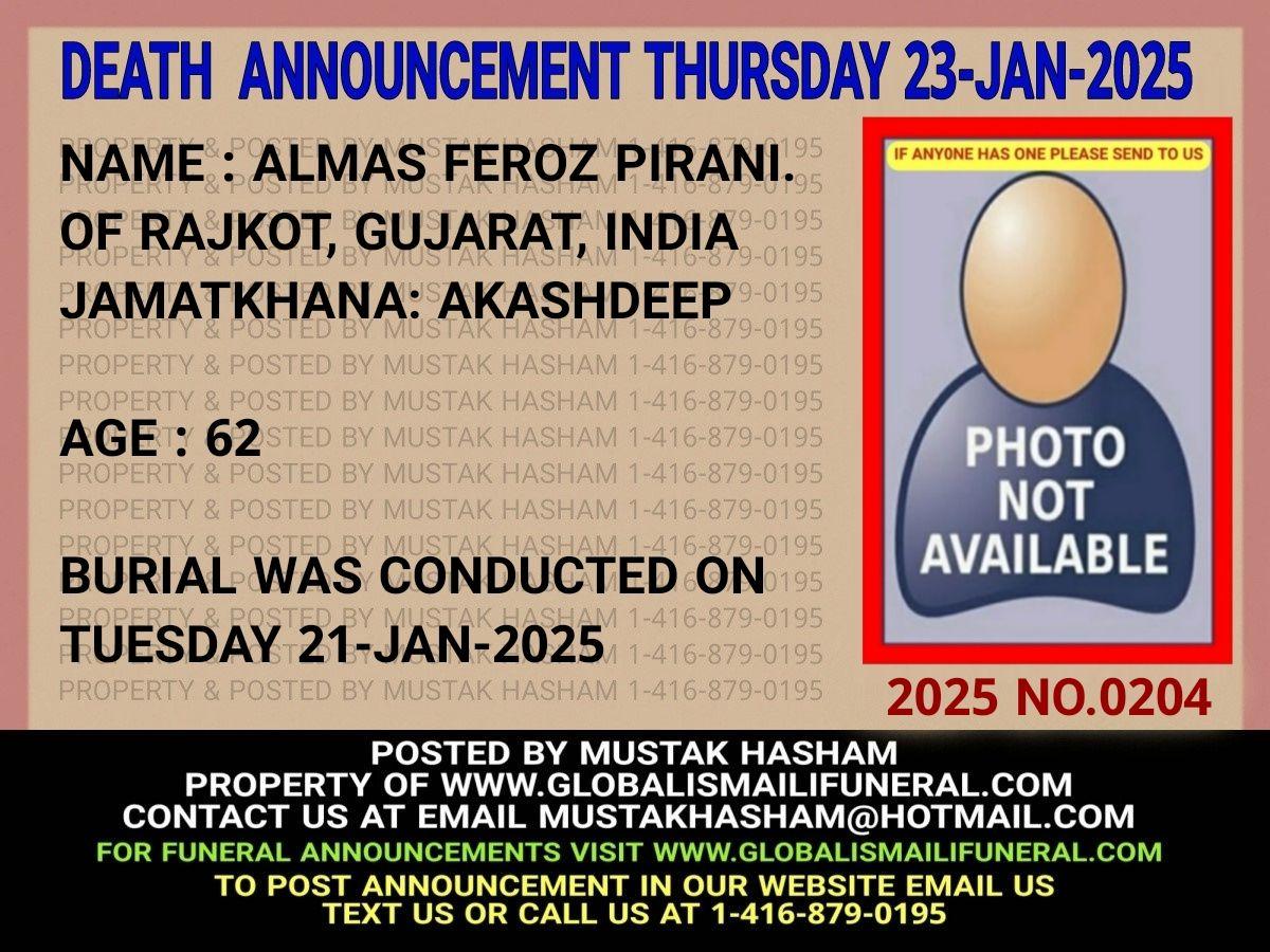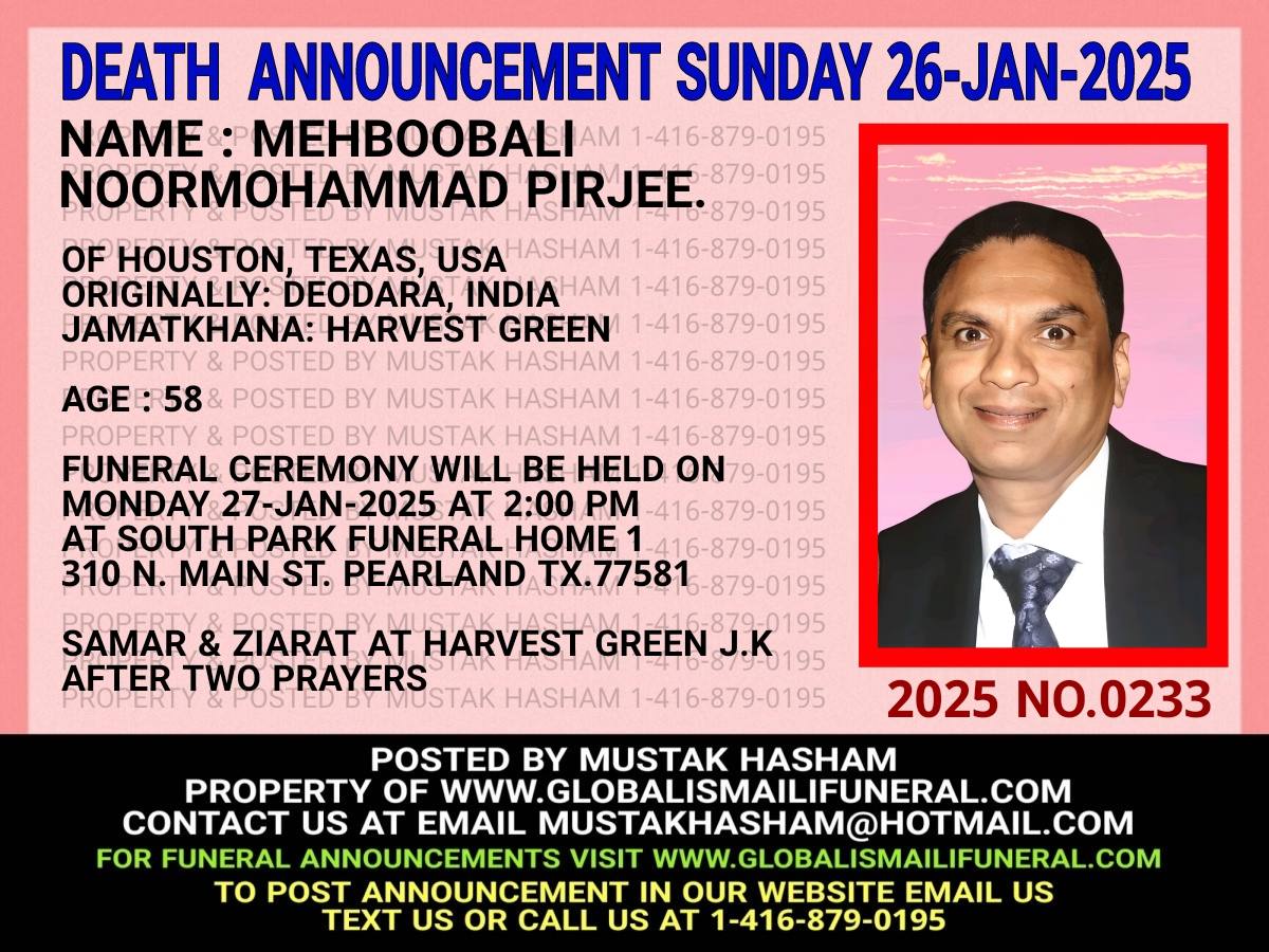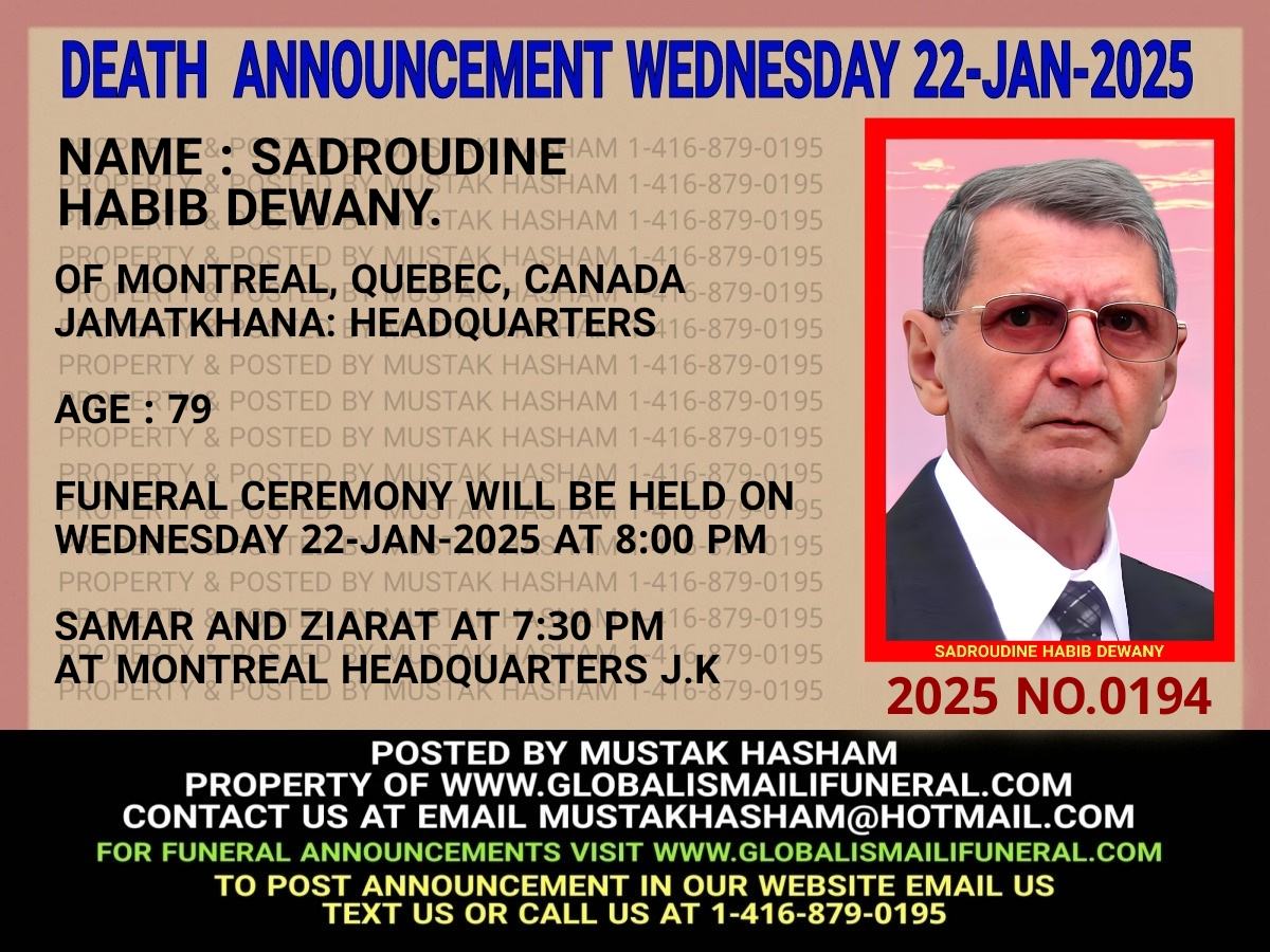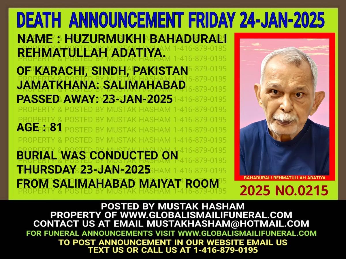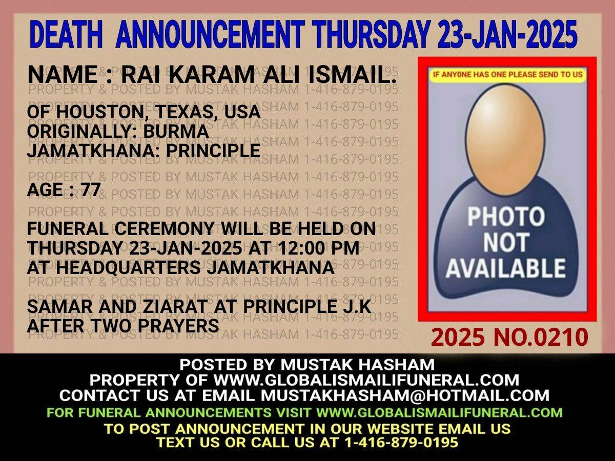 Tajdin Esmail Inna lillahi wa inna ilayhi raji'un - May the departed soul rest in eternal peace. Ameen.