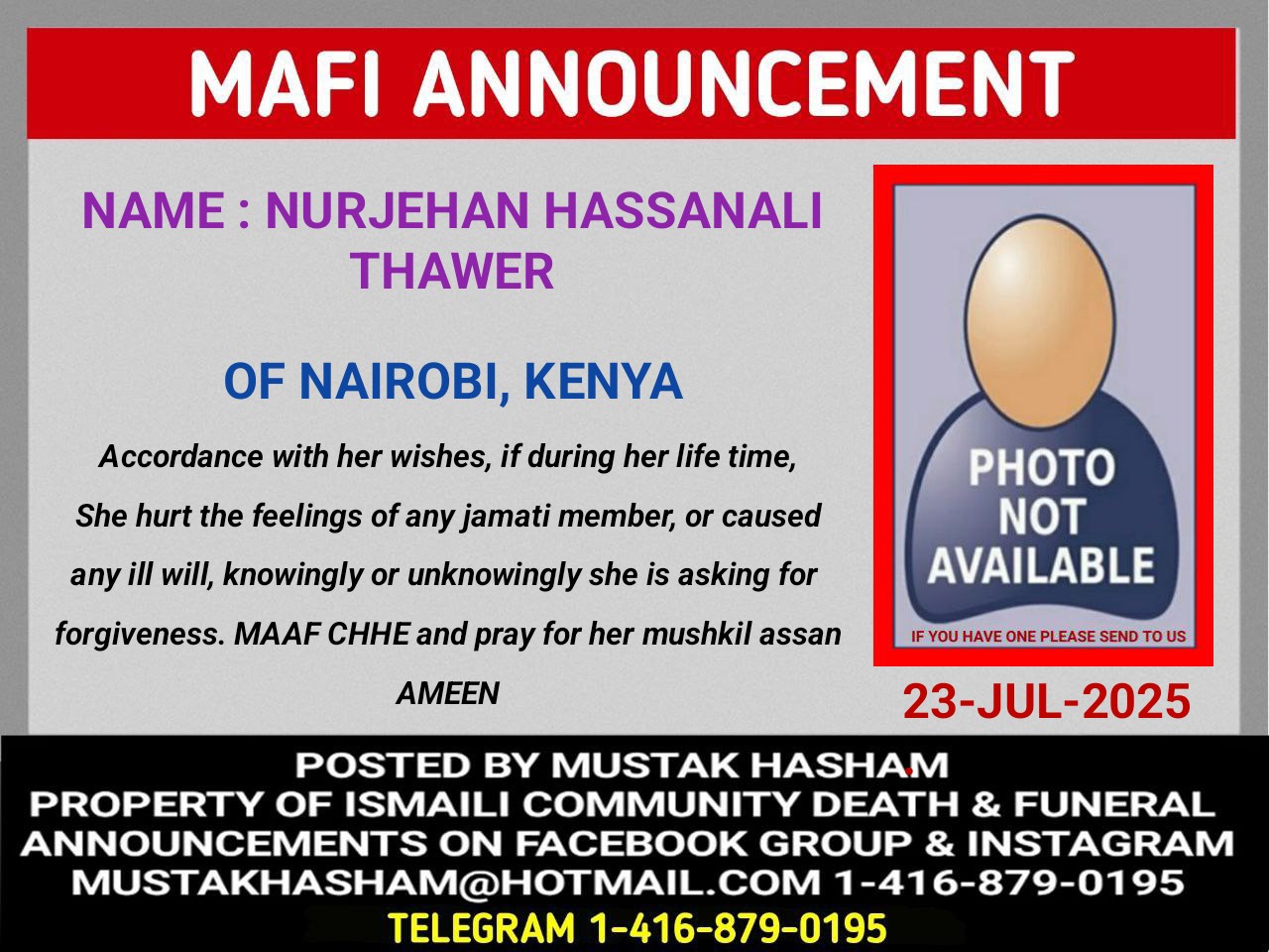 Maaf Chhe. Mowla Kul Mushkil Assan Kare. Ameen.