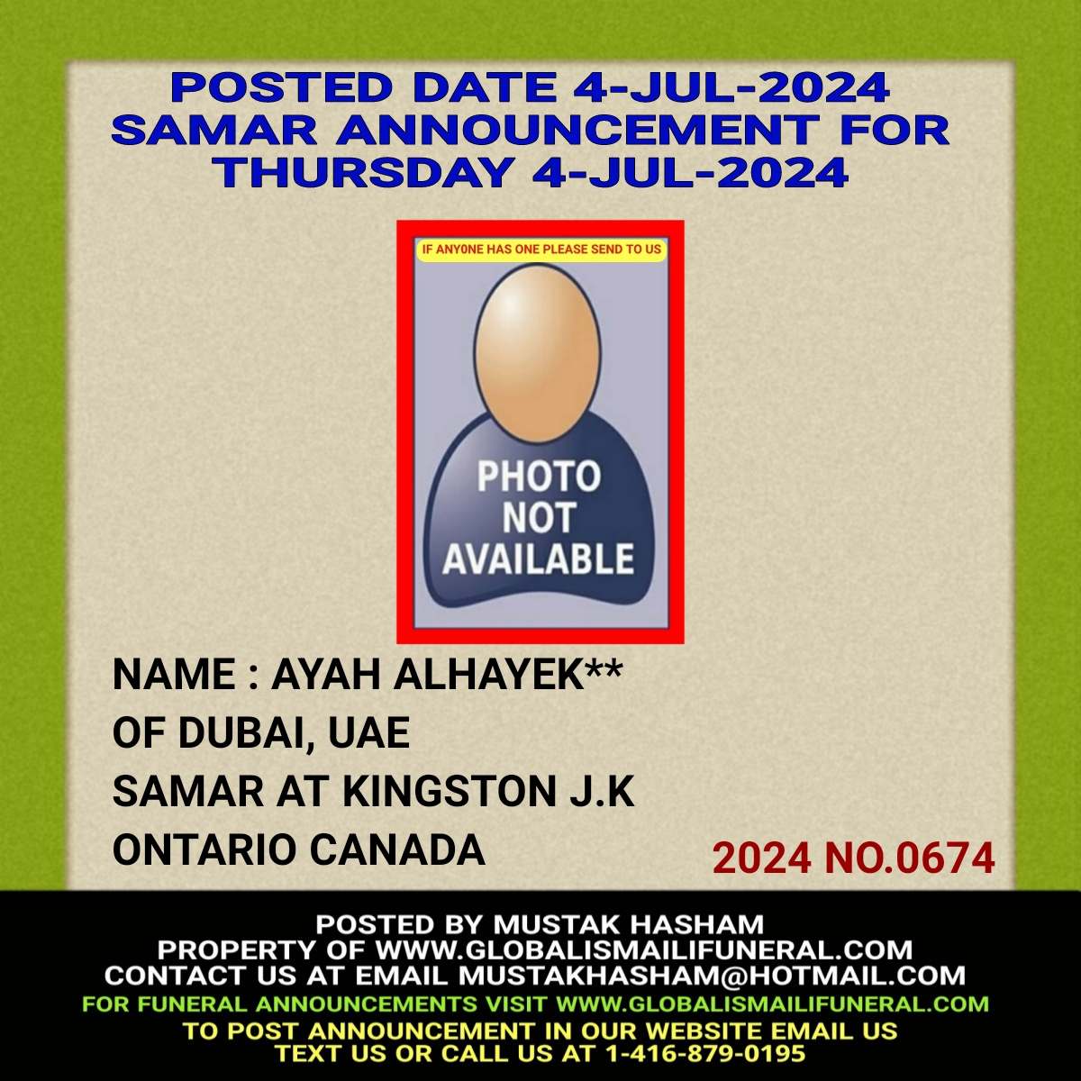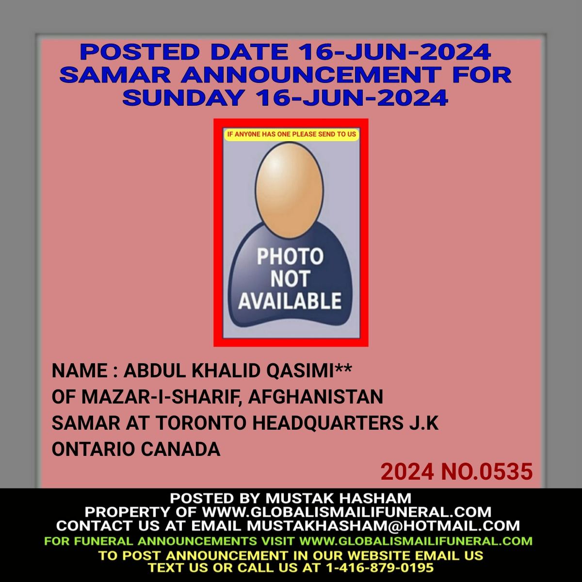 Phone us, Text us, Whatapp us At 1-416-879-0195 Email us at Mustakhasham@hotmail.com