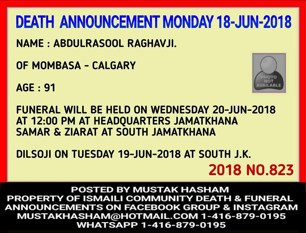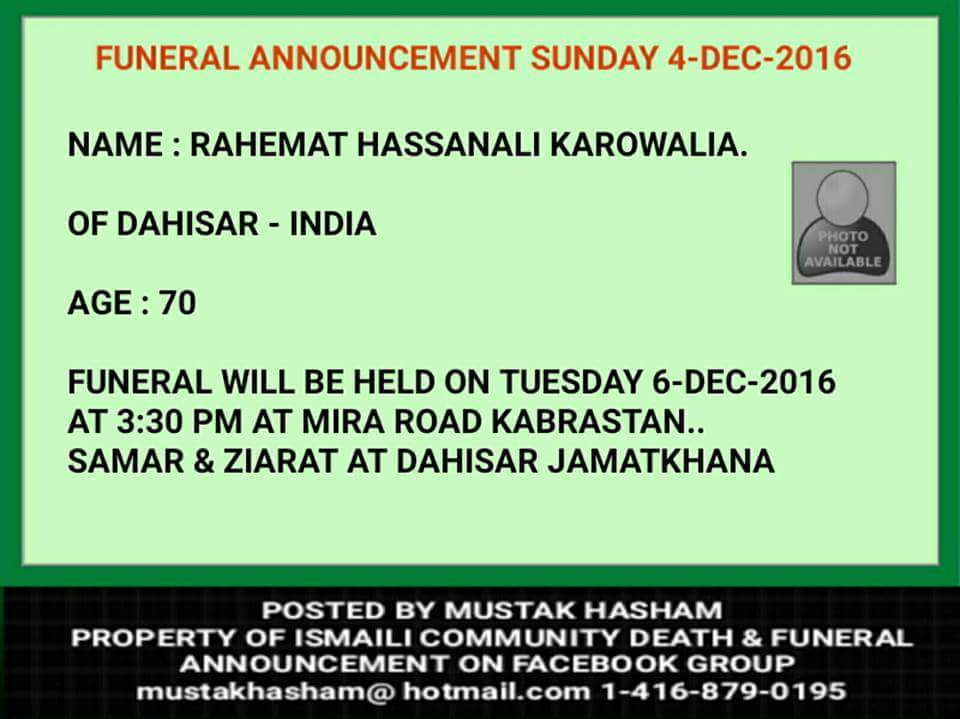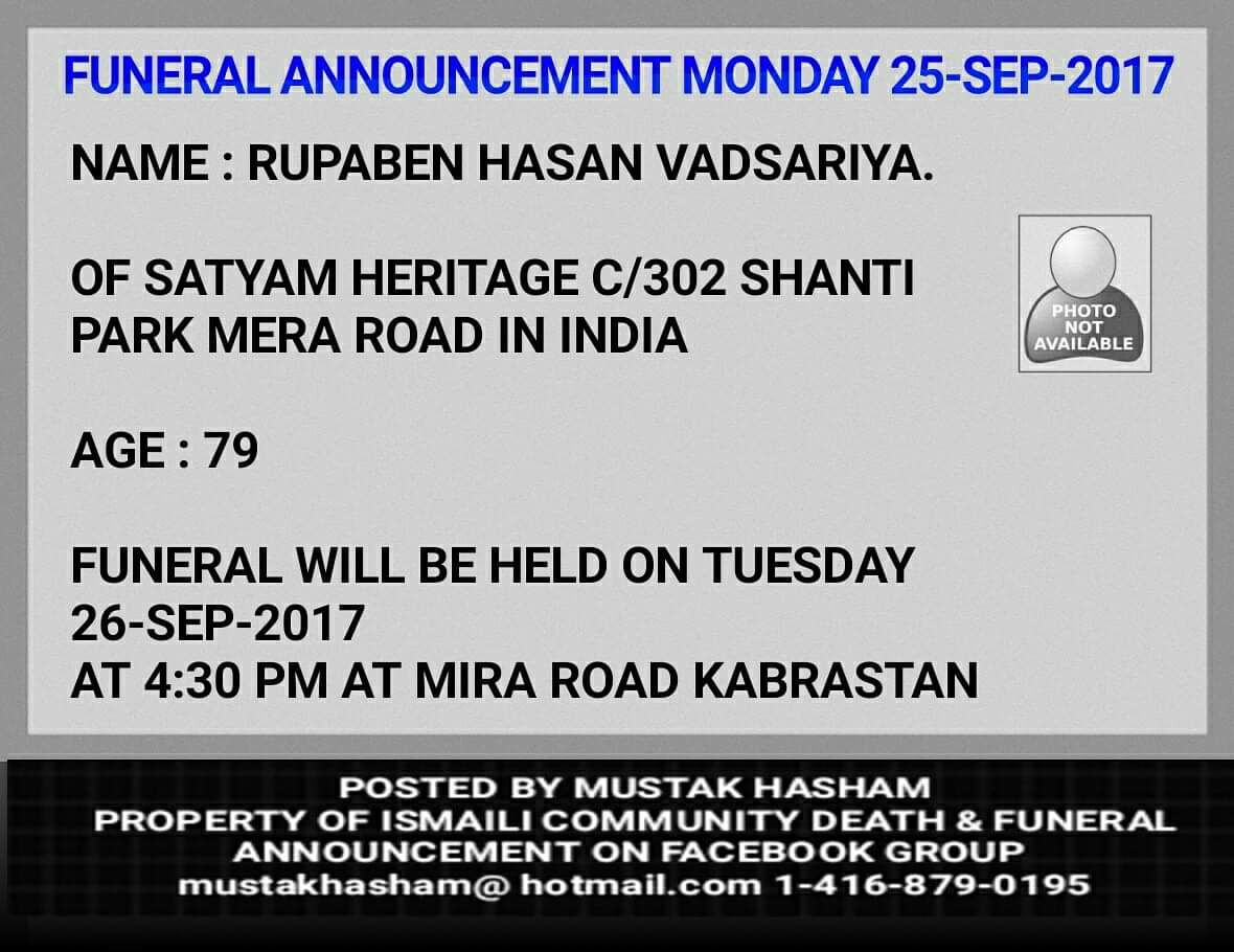 Taj Esmail - Inna-lillahi wa Inna-Elahi Rajeun. May the departed soul rest in Eternal Peace. Ameen.