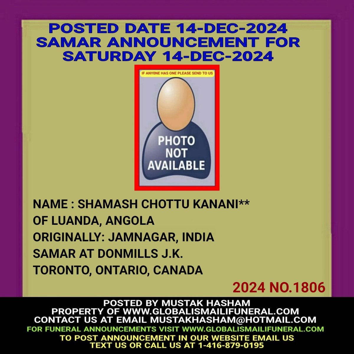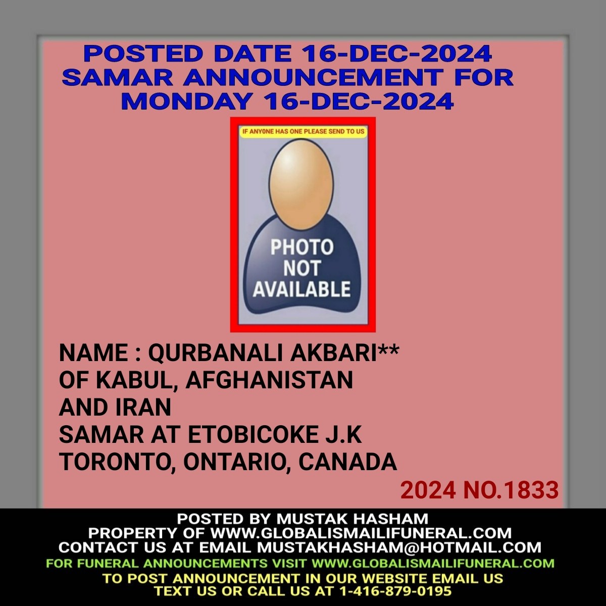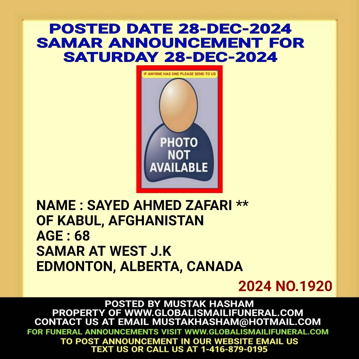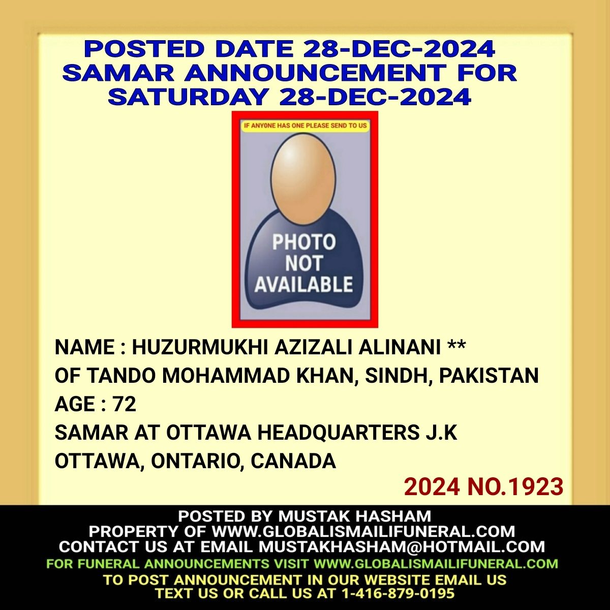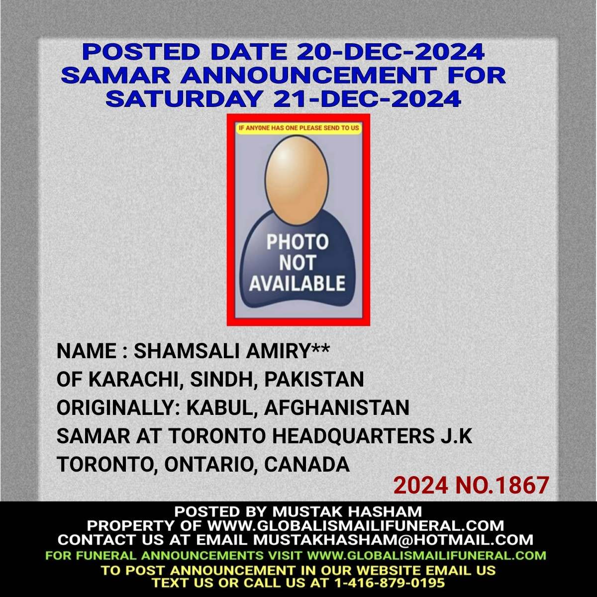 Phone us, Text us, Whatapp us At 1-416-879-0195 Email us at Mustakhasham@hotmail.com