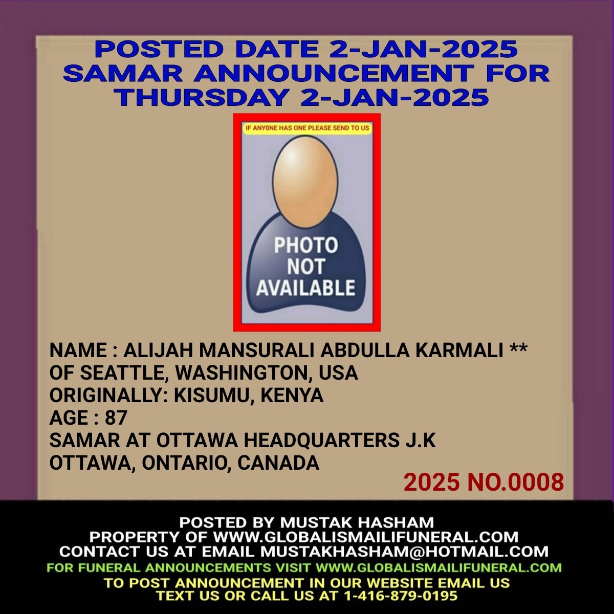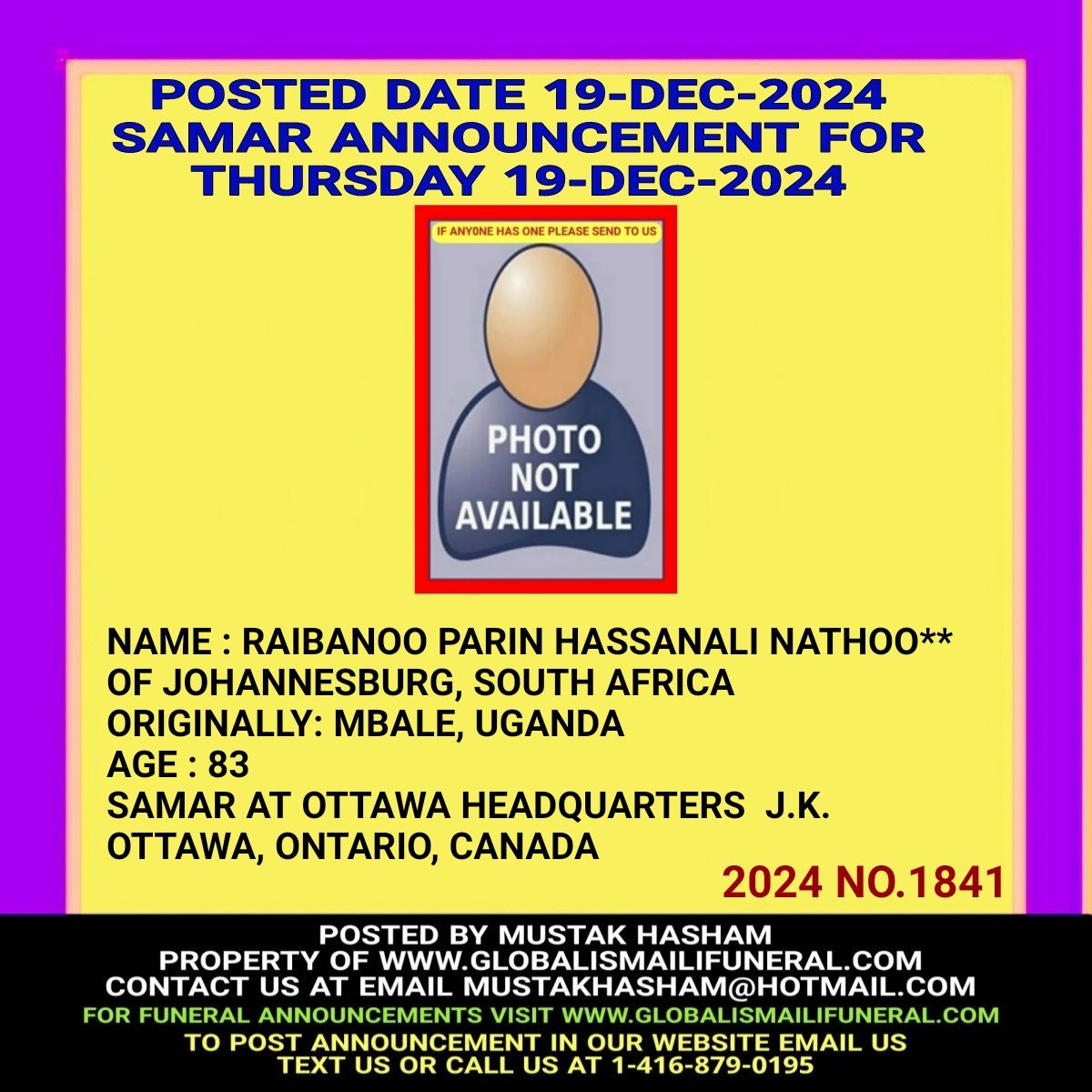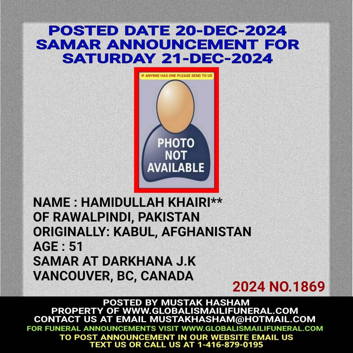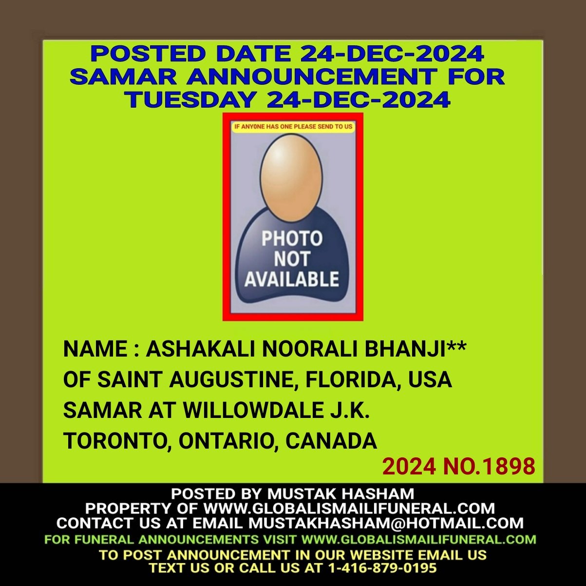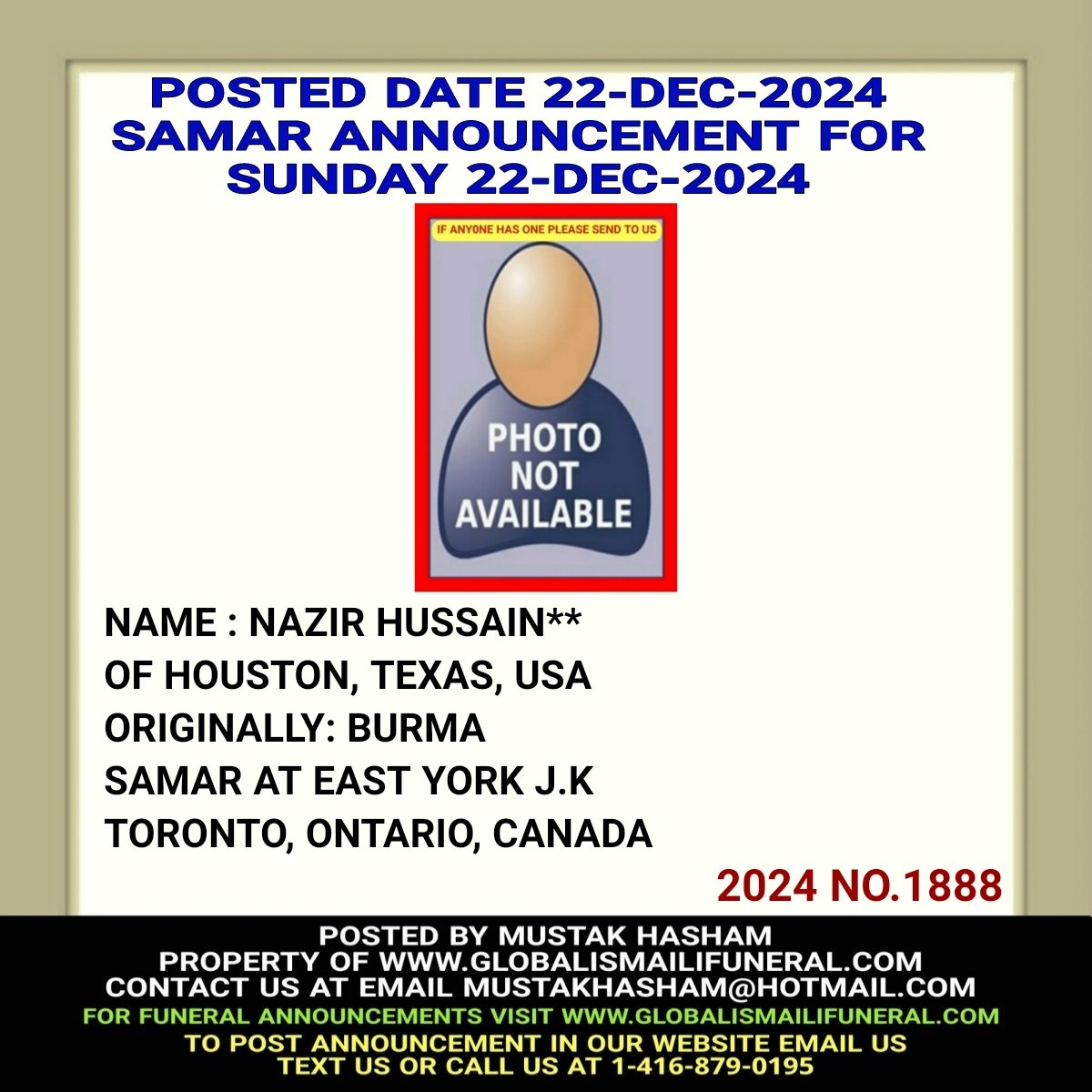 Phone us, Text us, Whatapp us At 1-416-879-0195 Email us at Mustakhasham@hotmail.com