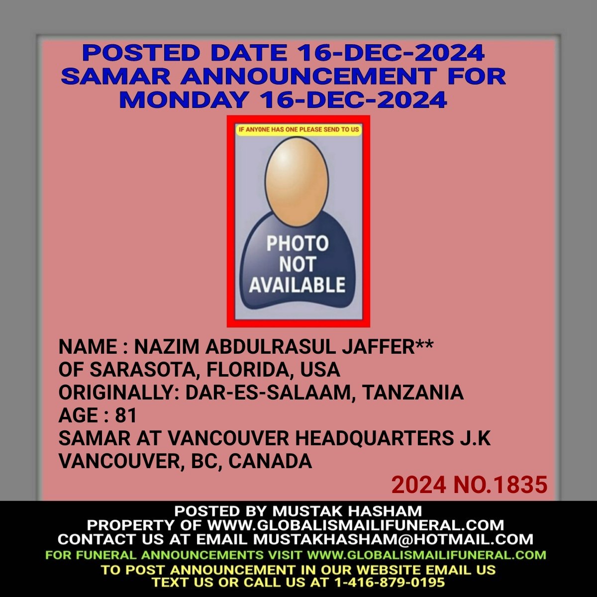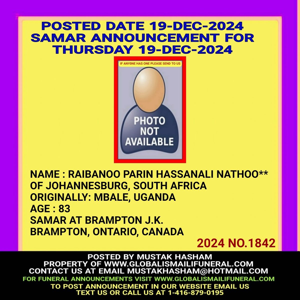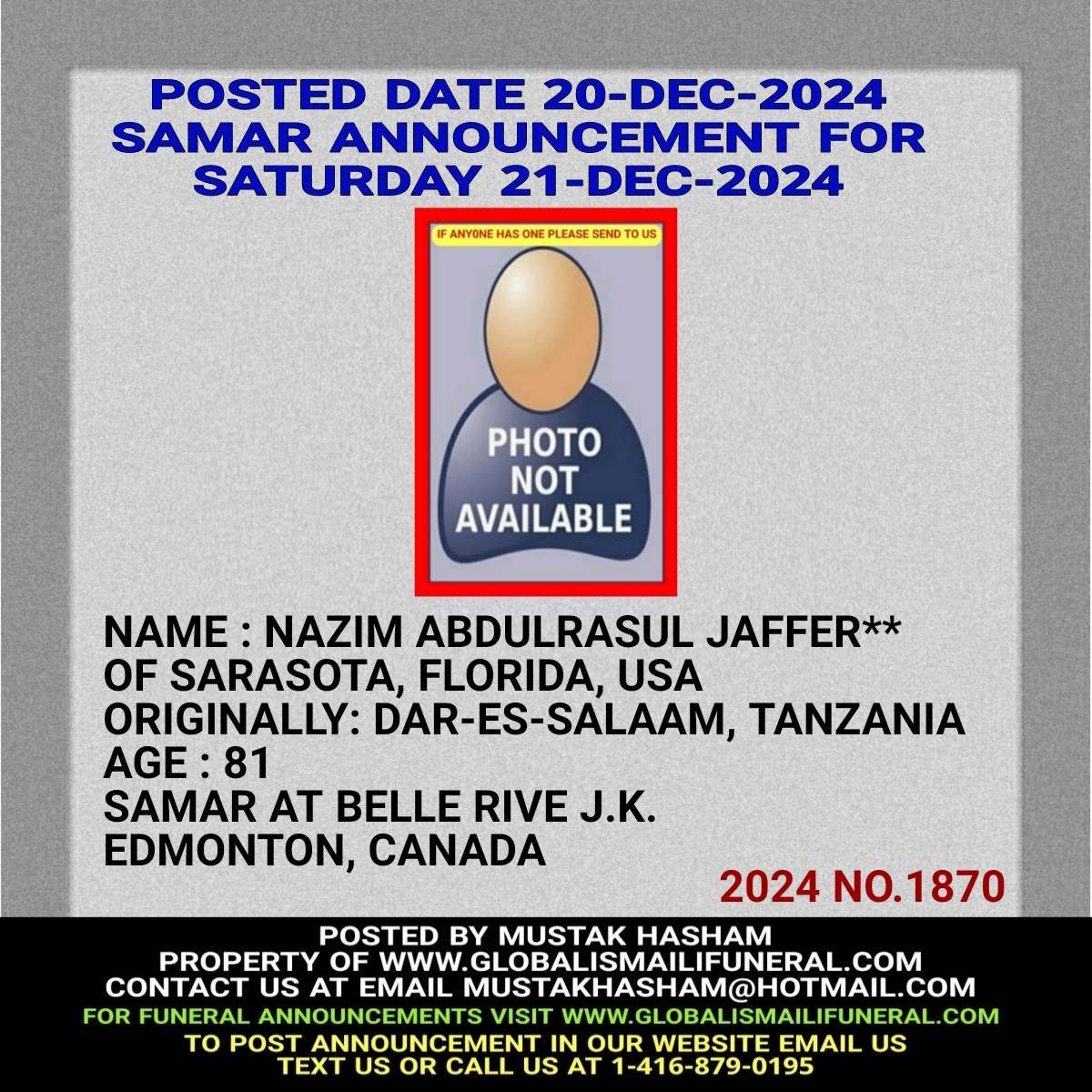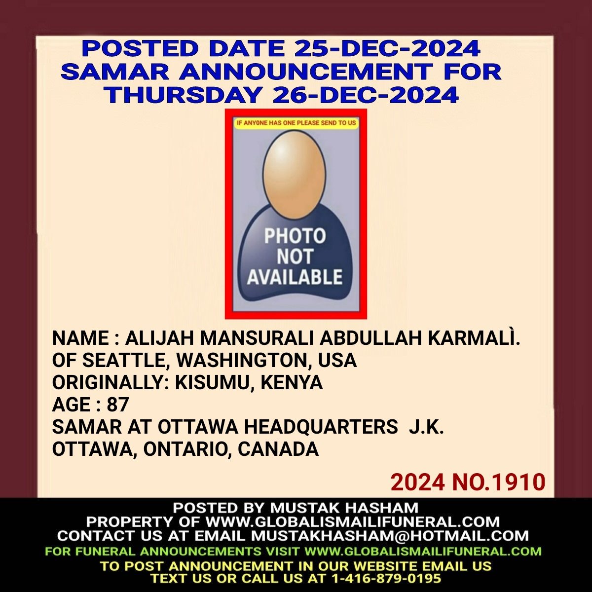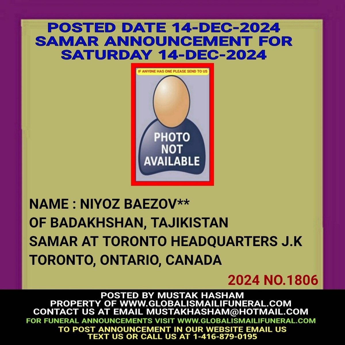 Phone us, Text us, Whatapp us At 1-416-879-0195 Email us at Mustakhasham@hotmail.com