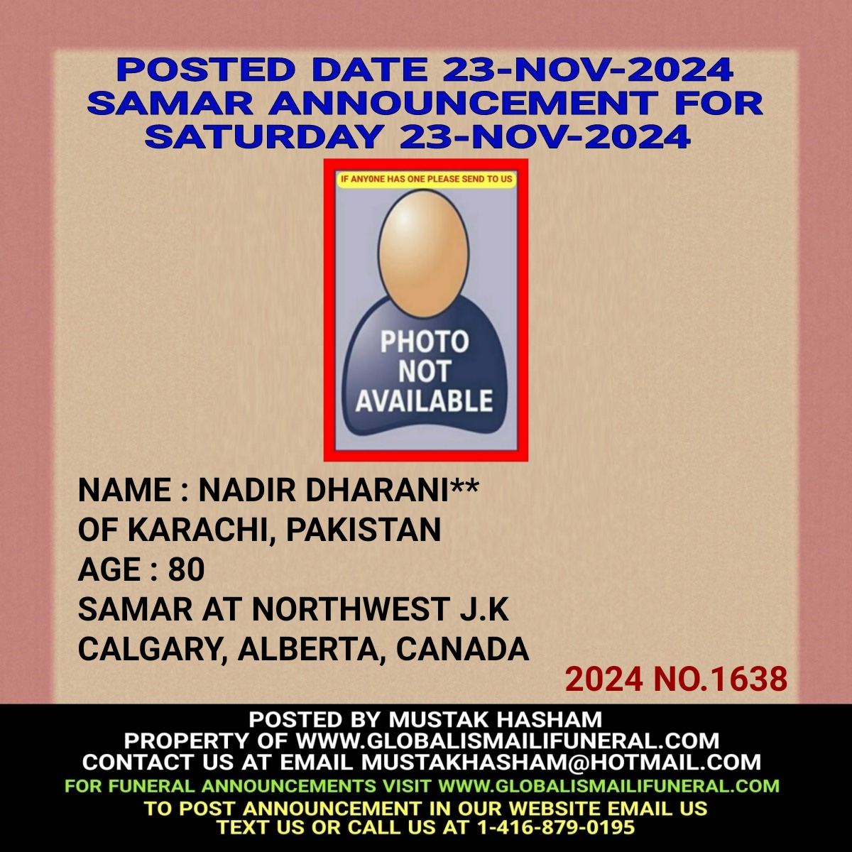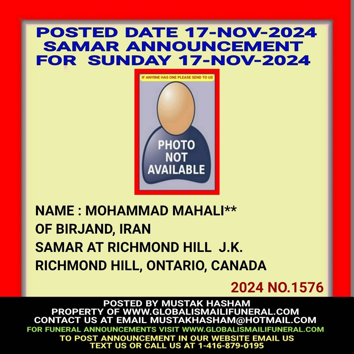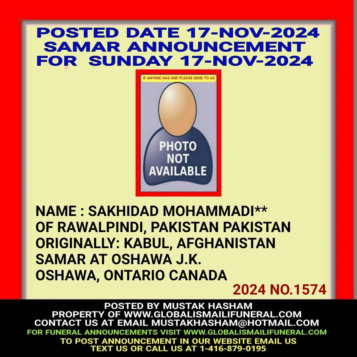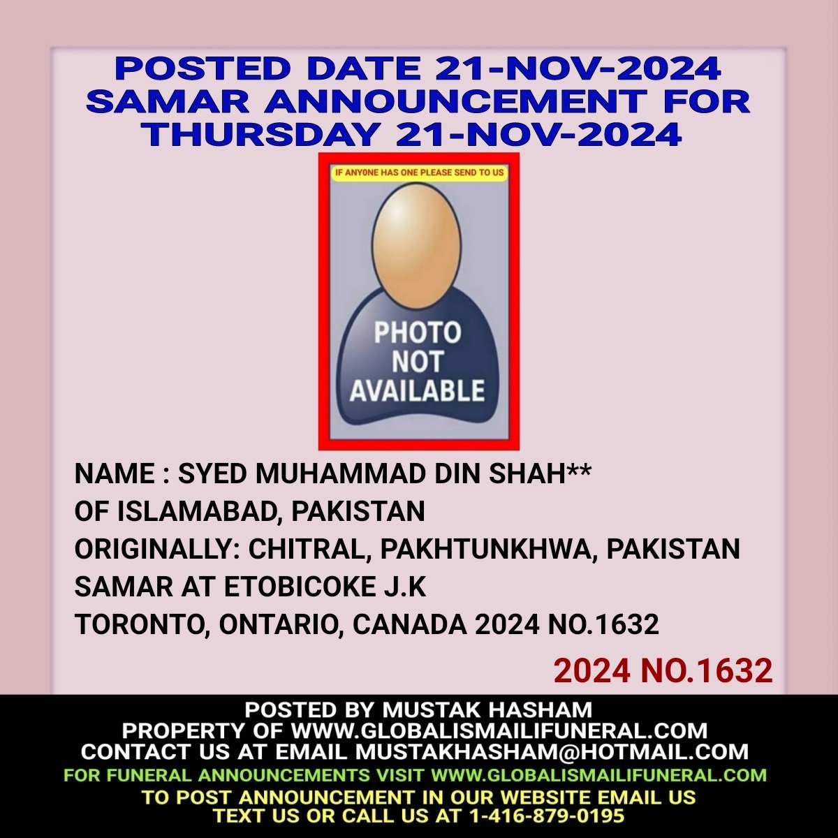 Phone us, Text us, Whatapp us At 1-416-879-0195 Email us at Mustakhasham@hotmail.com
