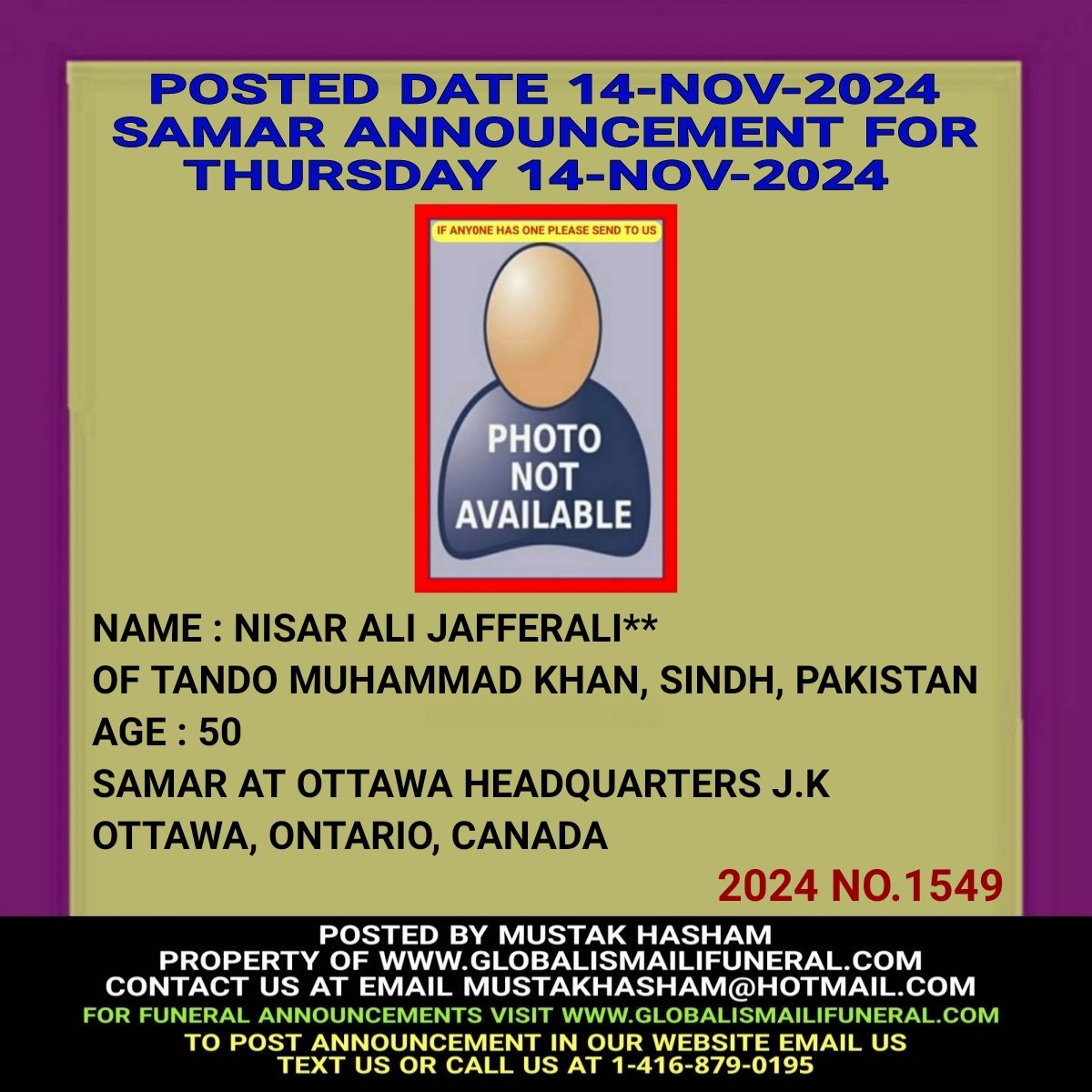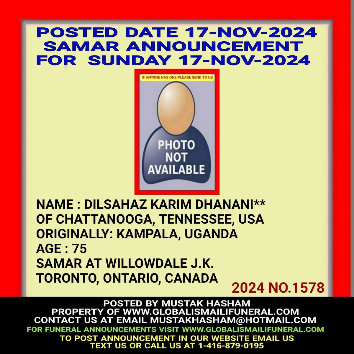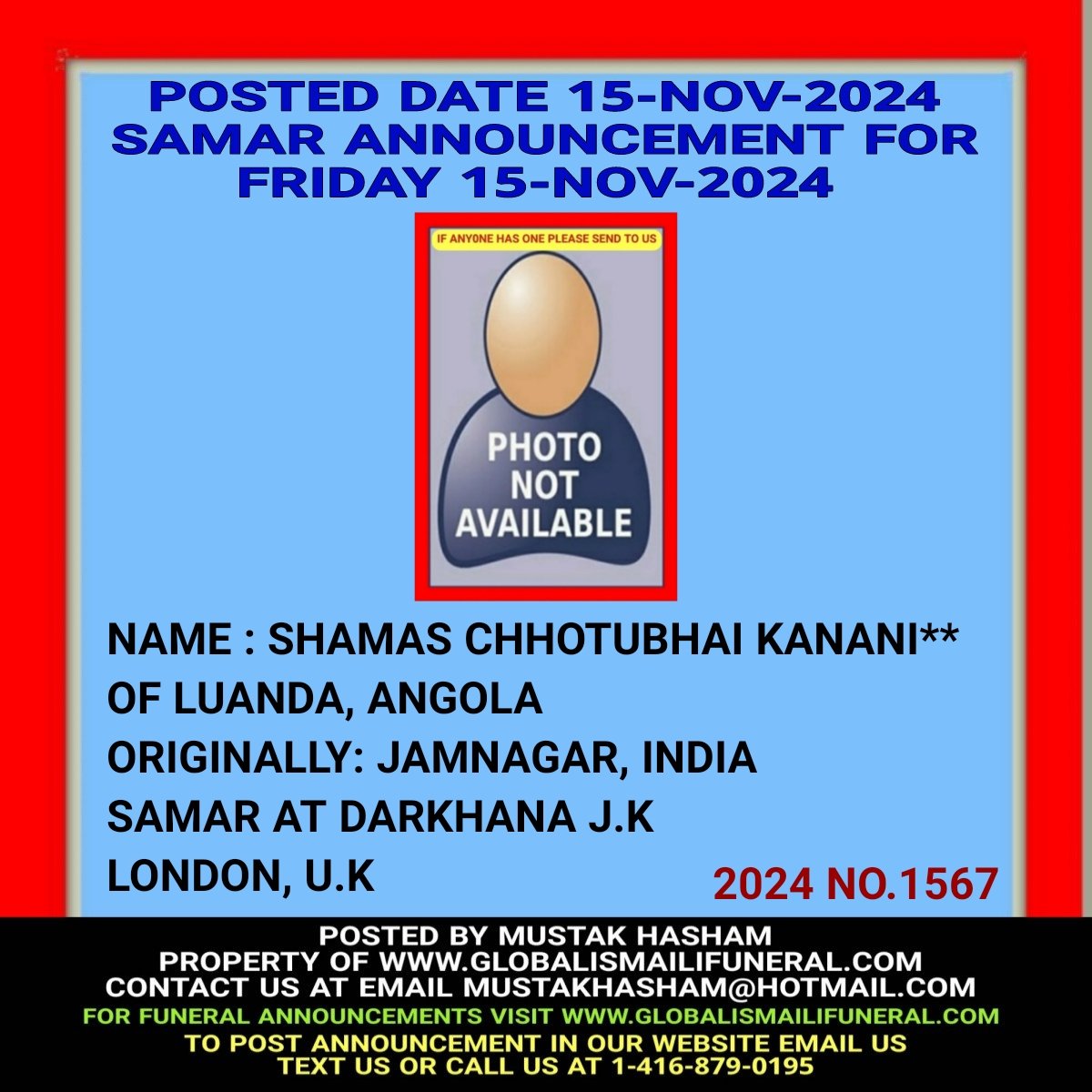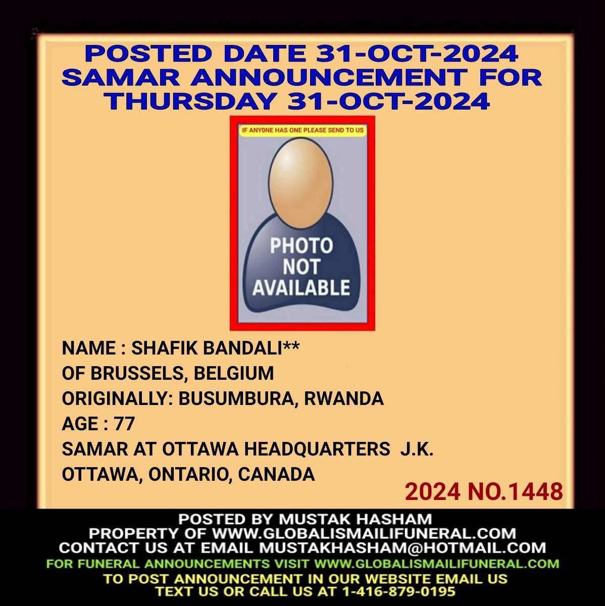 Phone us, Text us, Whatapp us At 1-416-879-0195 Email us at Mustakhasham@hotmail.com