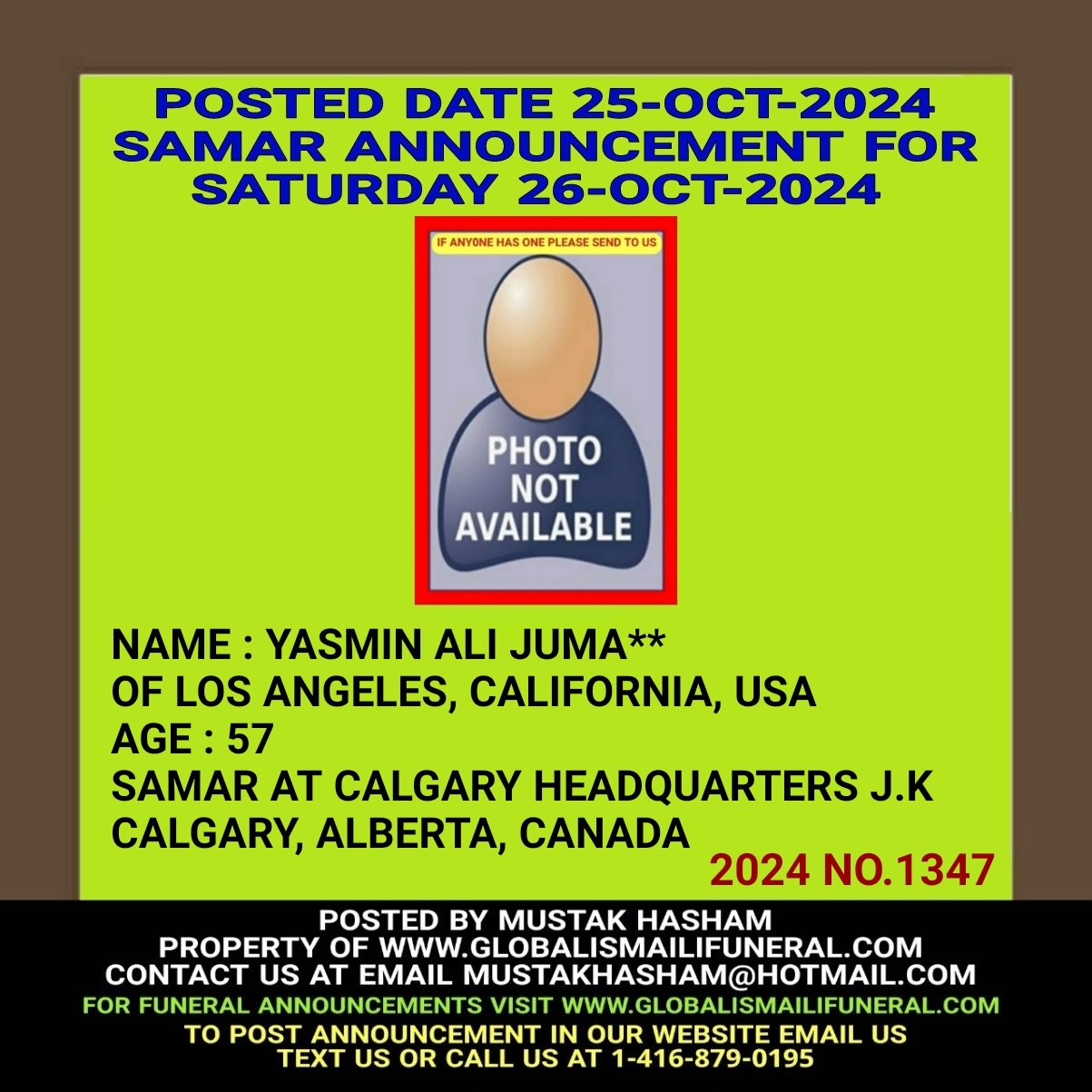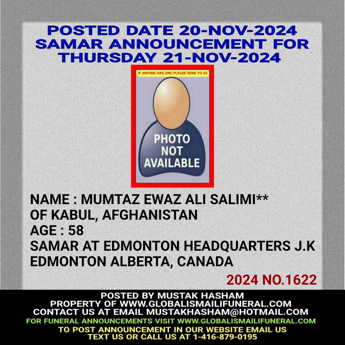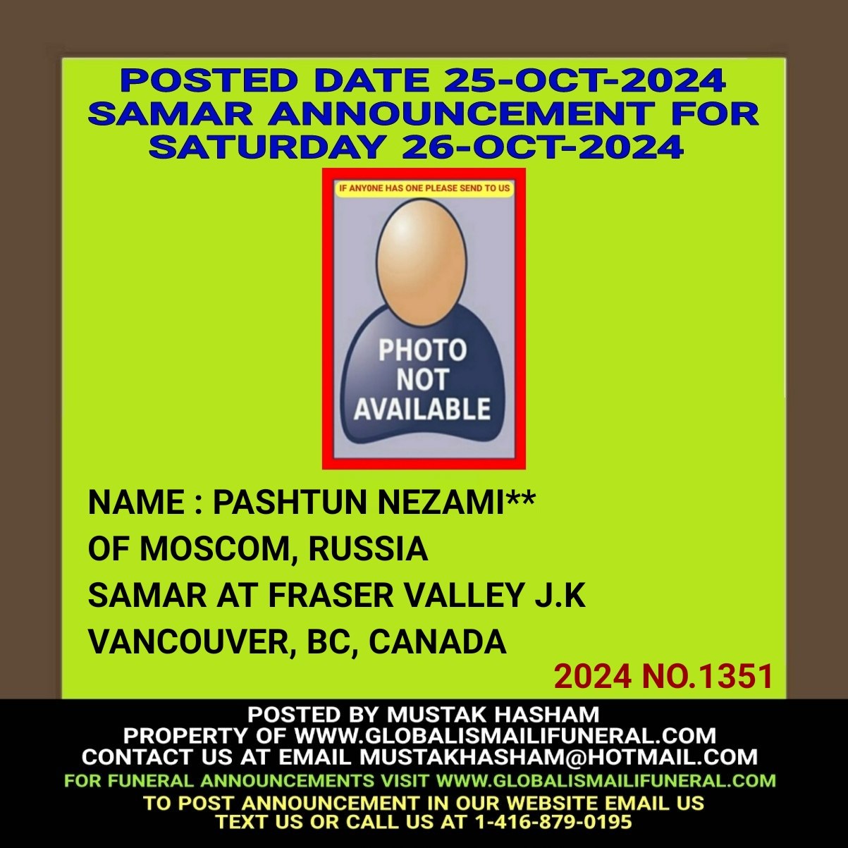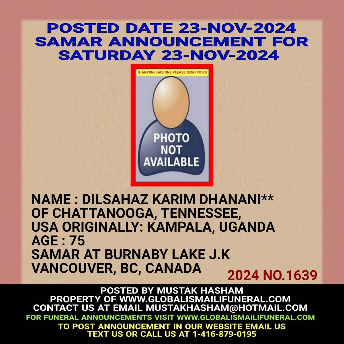 Phone us, Text us, Whatapp us At 1-416-879-0195 Email us at Mustakhasham@hotmail.com
