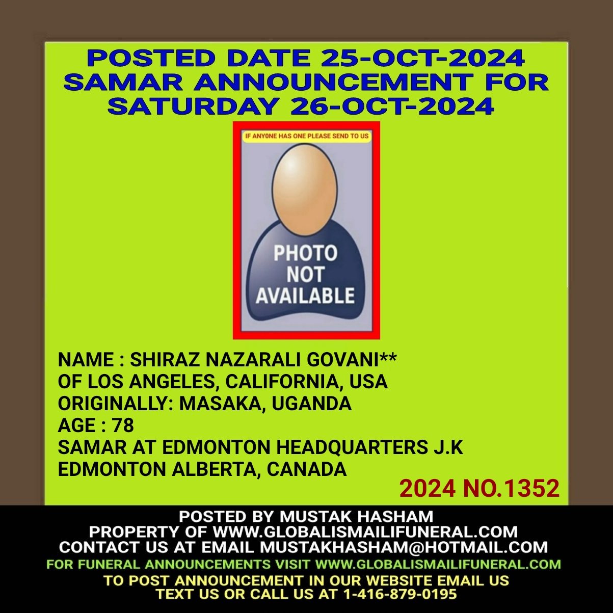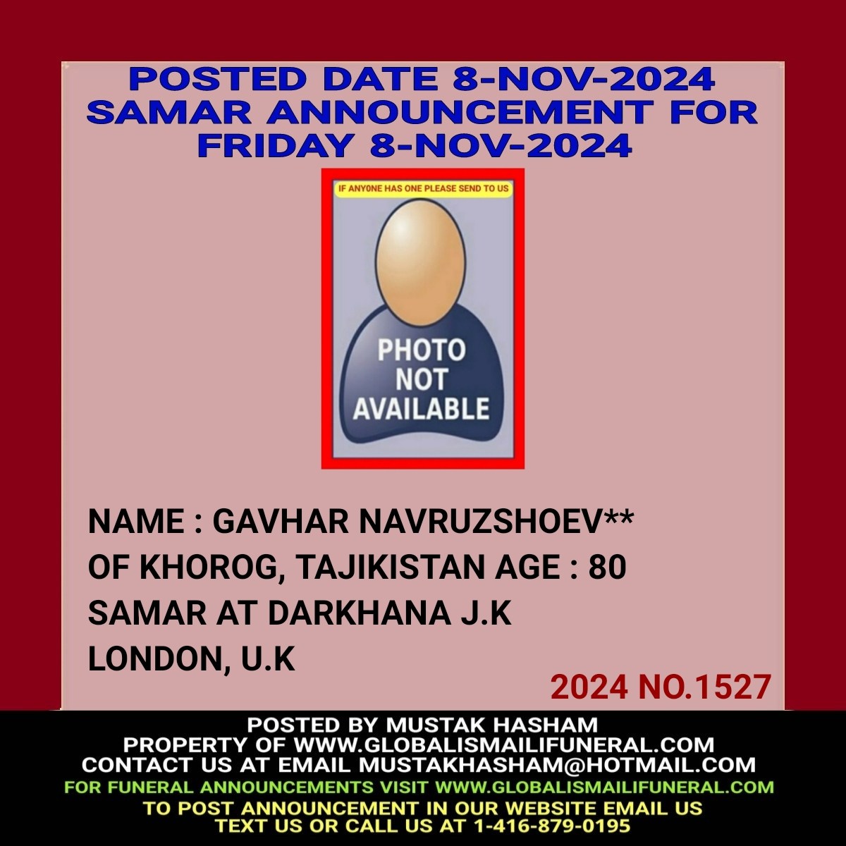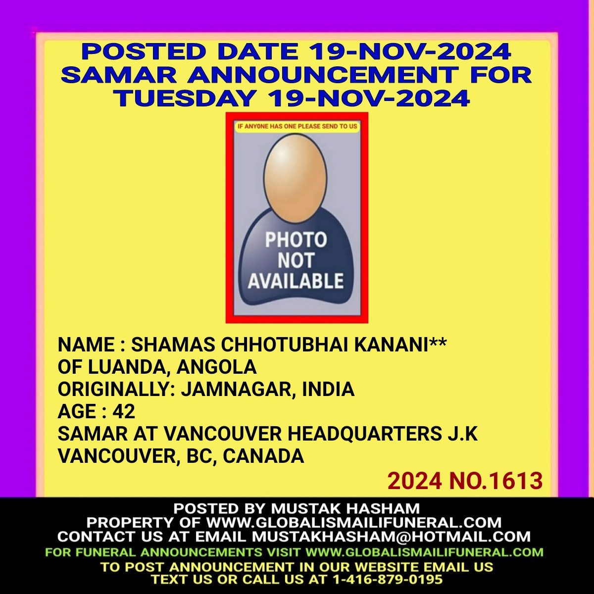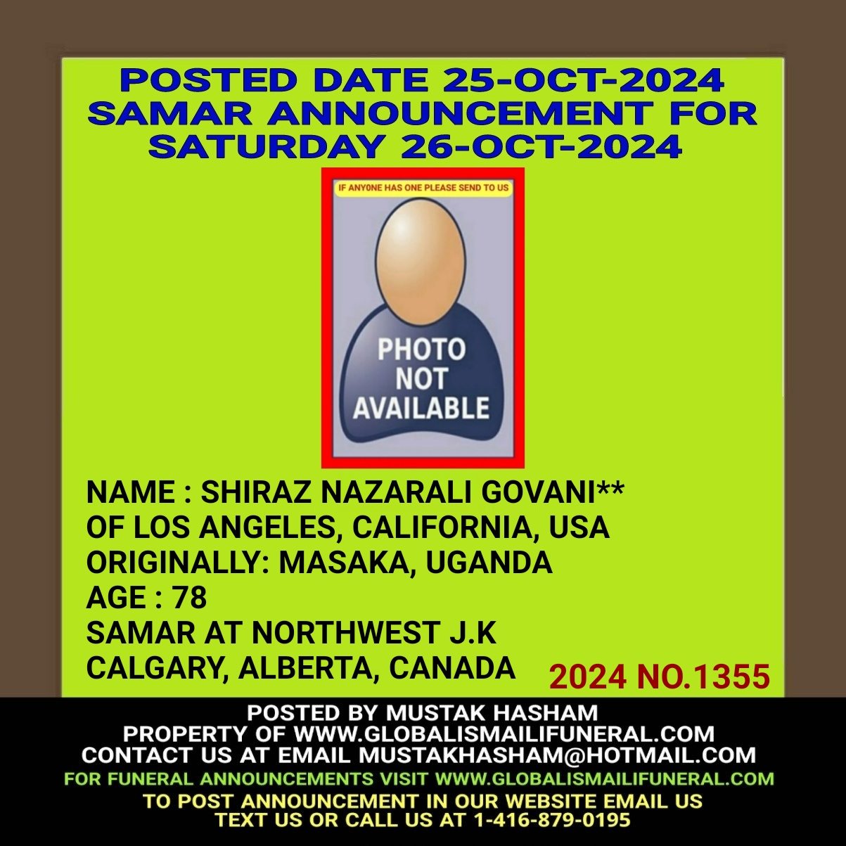 Phone us, Text us, Whatapp us At 1-416-879-0195 Email us at Mustakhasham@hotmail.com