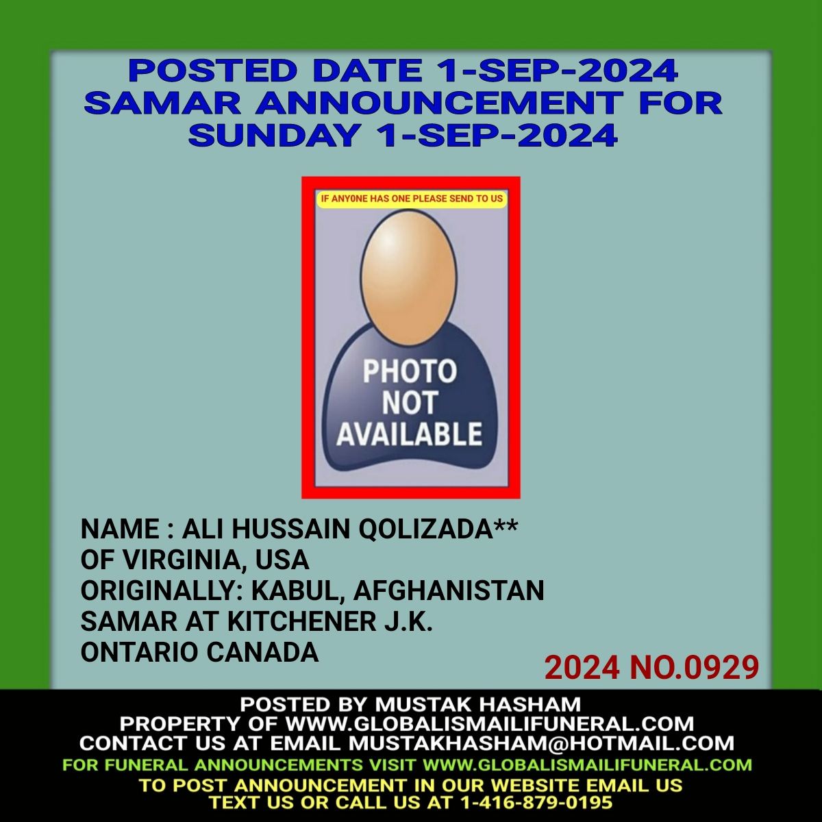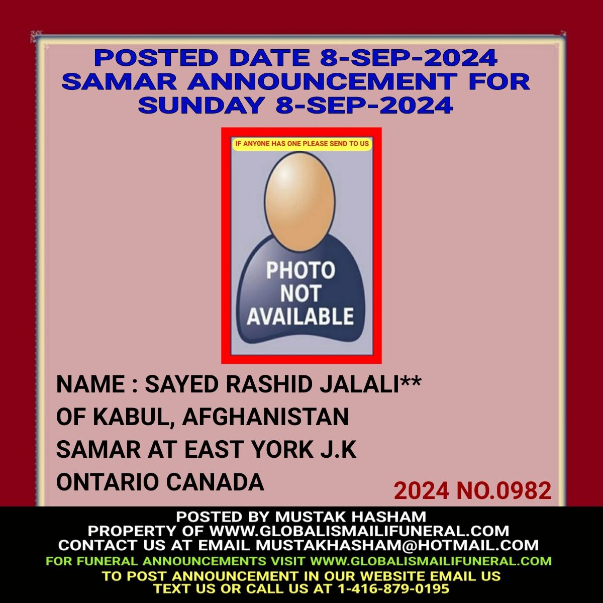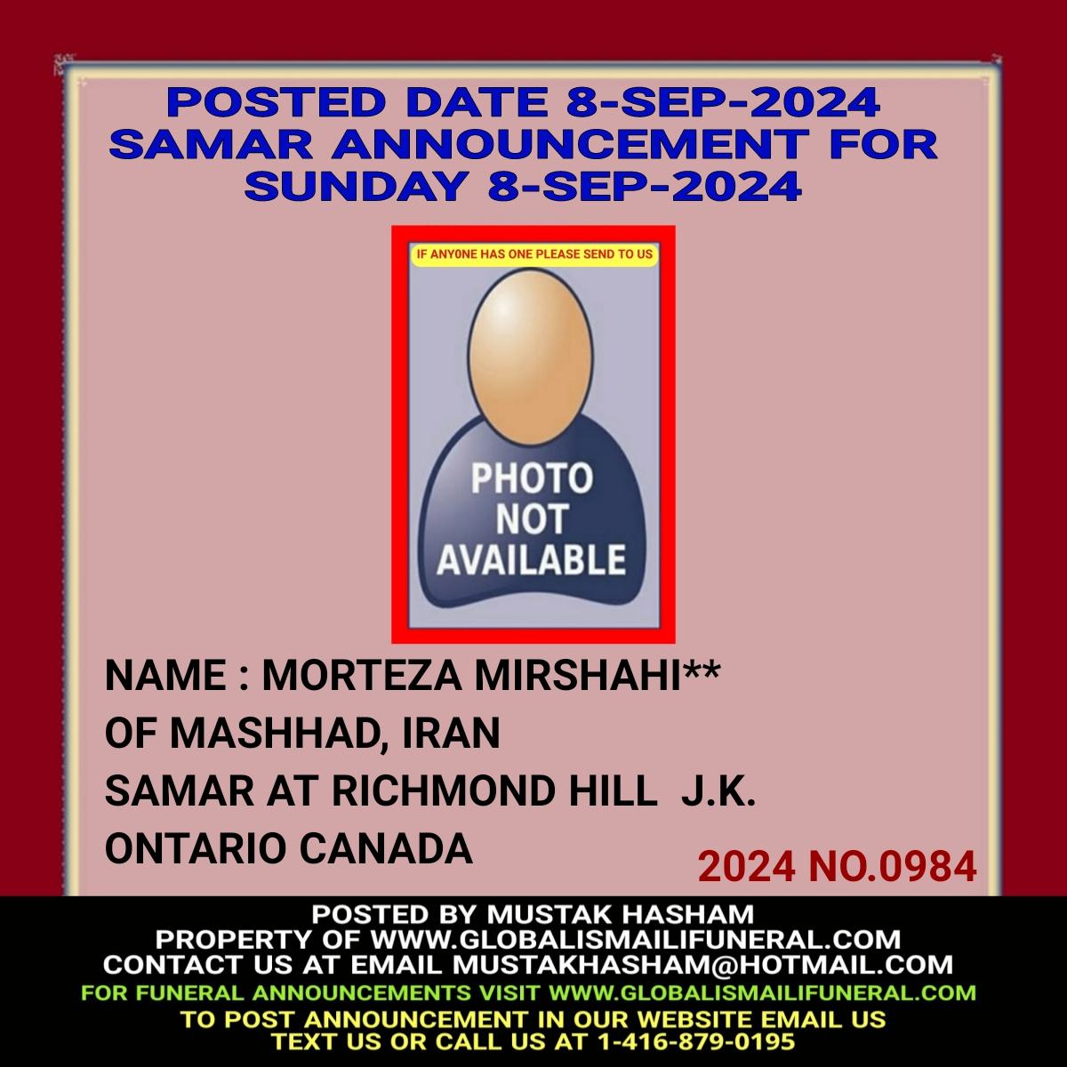 Phone us, Text us, Whatapp us At 1-416-879-0195 Email us at Mustakhasham@hotmail.com